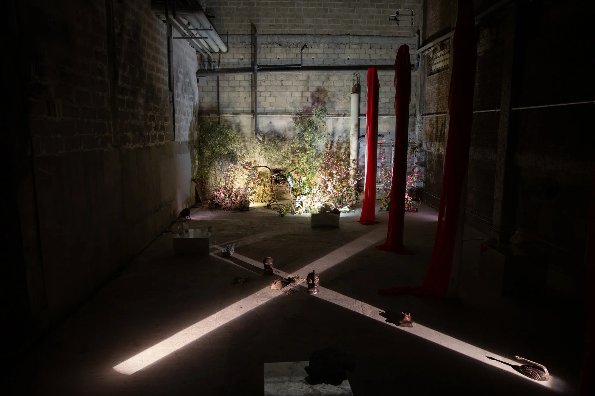D-constructing Collective Exhaustion is an immersive installation that delves into the themes of Time, Presence, and Attention. Through its composition of constructed wooden structures, ropes, light, sound, and space, the piece encourages viewers to slow down, engage their senses, and enter a contemplative state. It offers a moment of grounding, a brief refuge from the overstimulation of everyday life.