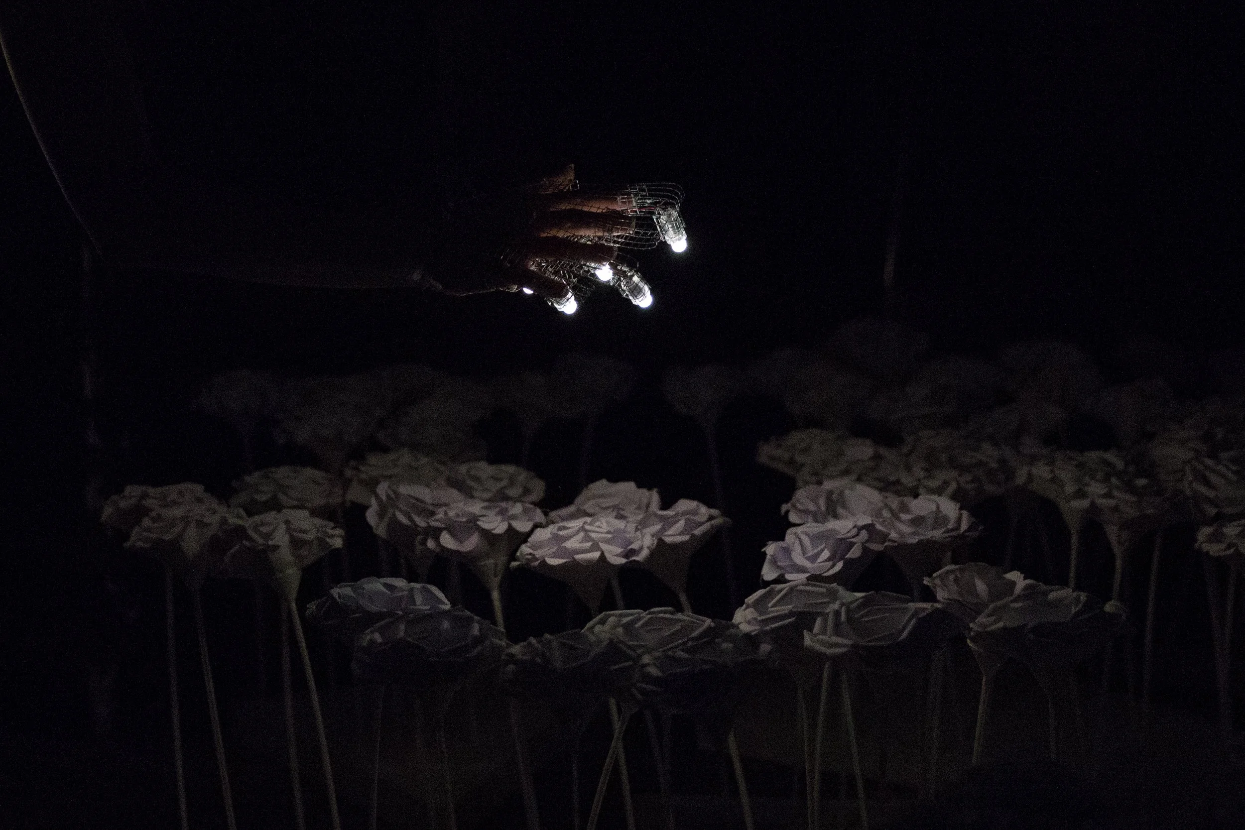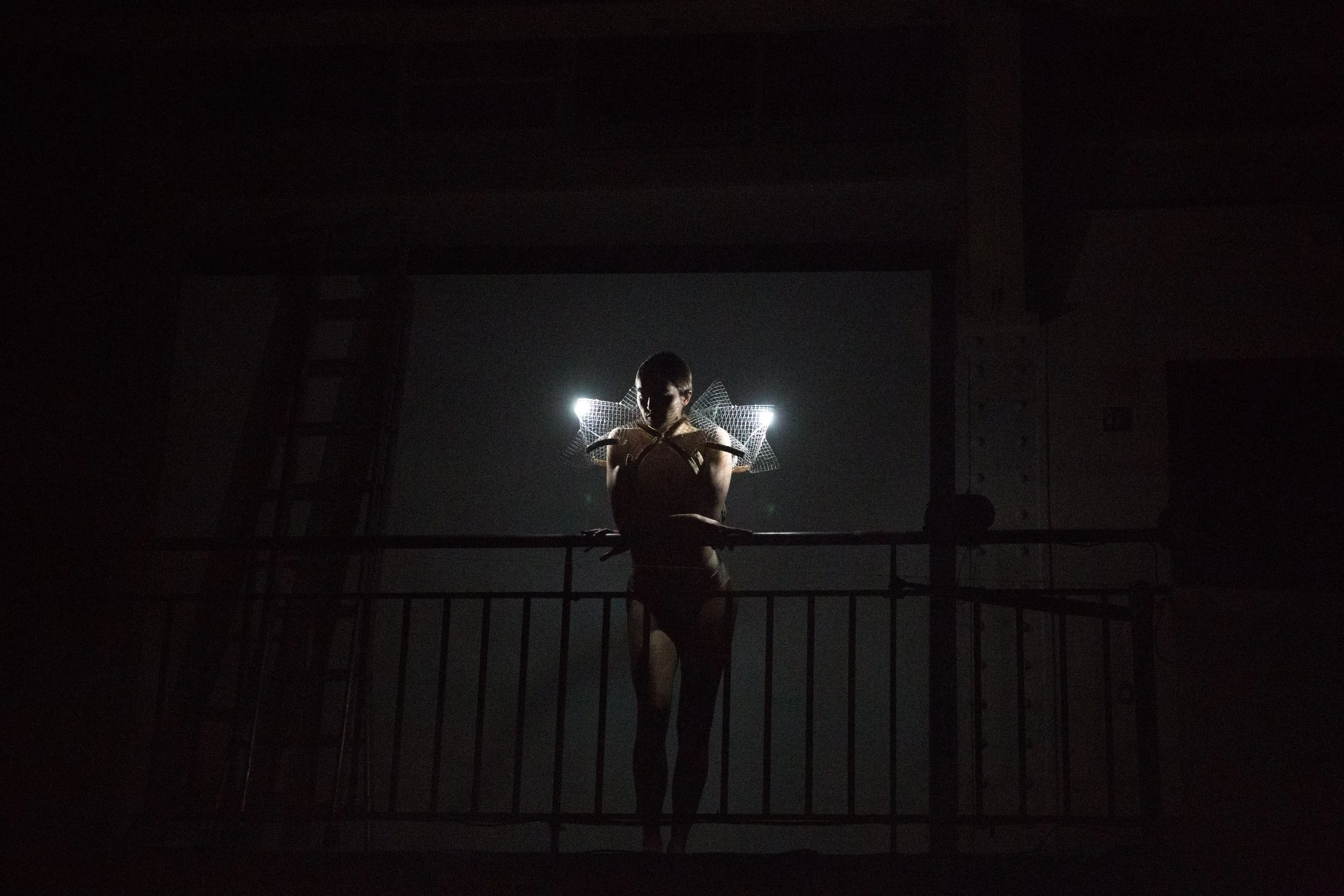 Issus de la danse contemporaine et travaillant au sein du Ballet Preljocaj, les artistes Laurent Le Gall & Antoine Dubois collaborent ensemble sur des projets pluridisciplinaires sous le nom Le Hang Art. Avec NOX, la performance déambulatoire plonge les spectateurs dans l’obscurité, afin d’y révéler les corps empreints d’une poésie étrange portant leurs créations lumineuses, immergées dans l’univers musical du compositeur Baptiste Lagrave.