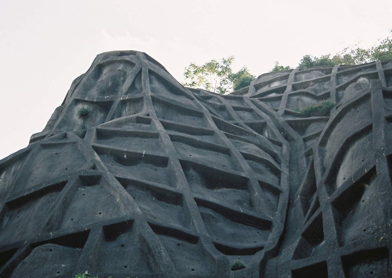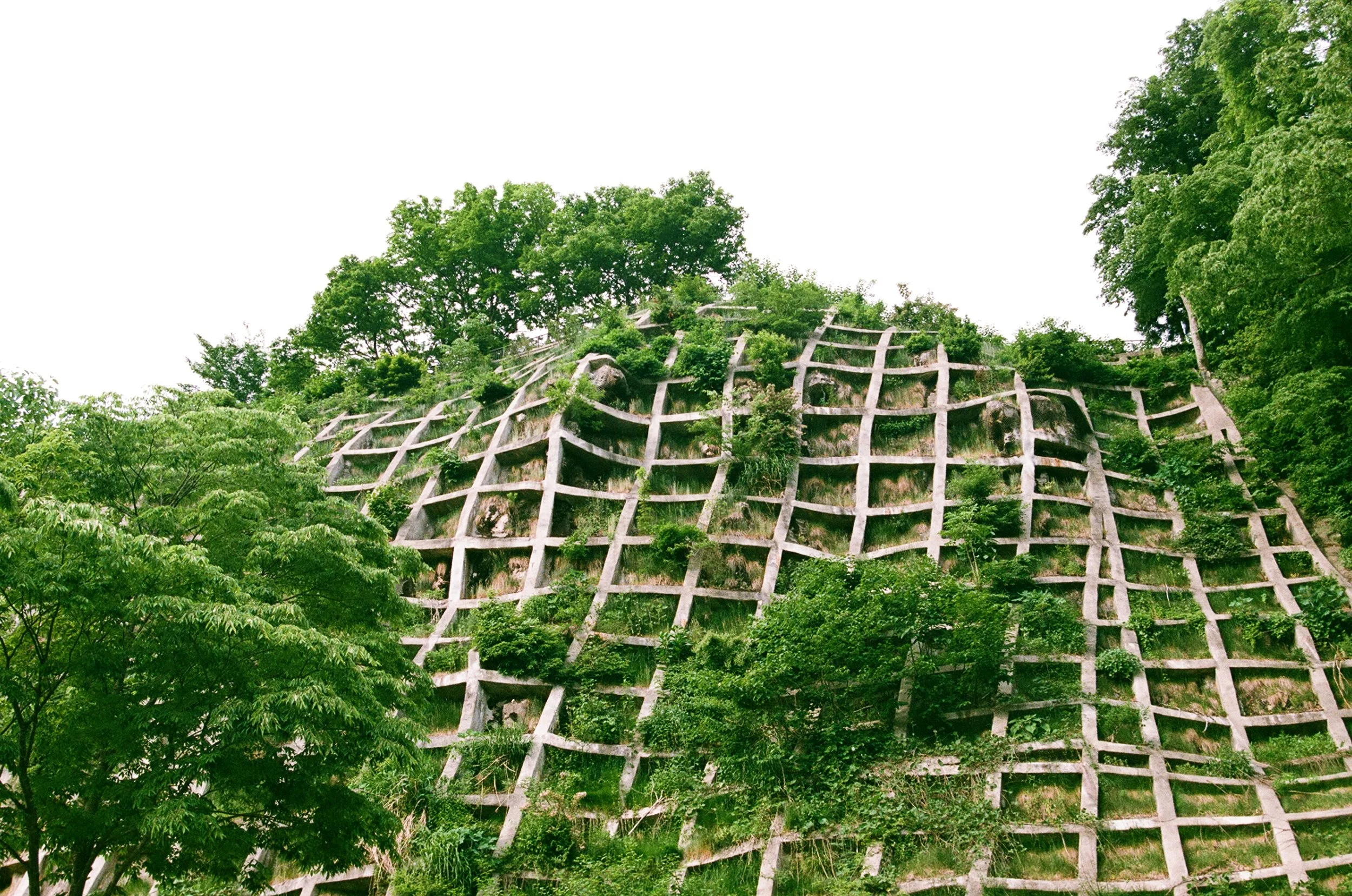 Holding Hills is a photographic series focusing on Japanese concrete hills. Partially or entirely covered, their grey mesh surfaces attempt to stabilize an unstable soil. At times engulfed by vegetation, they blend into the landscape until they become almost invisible.